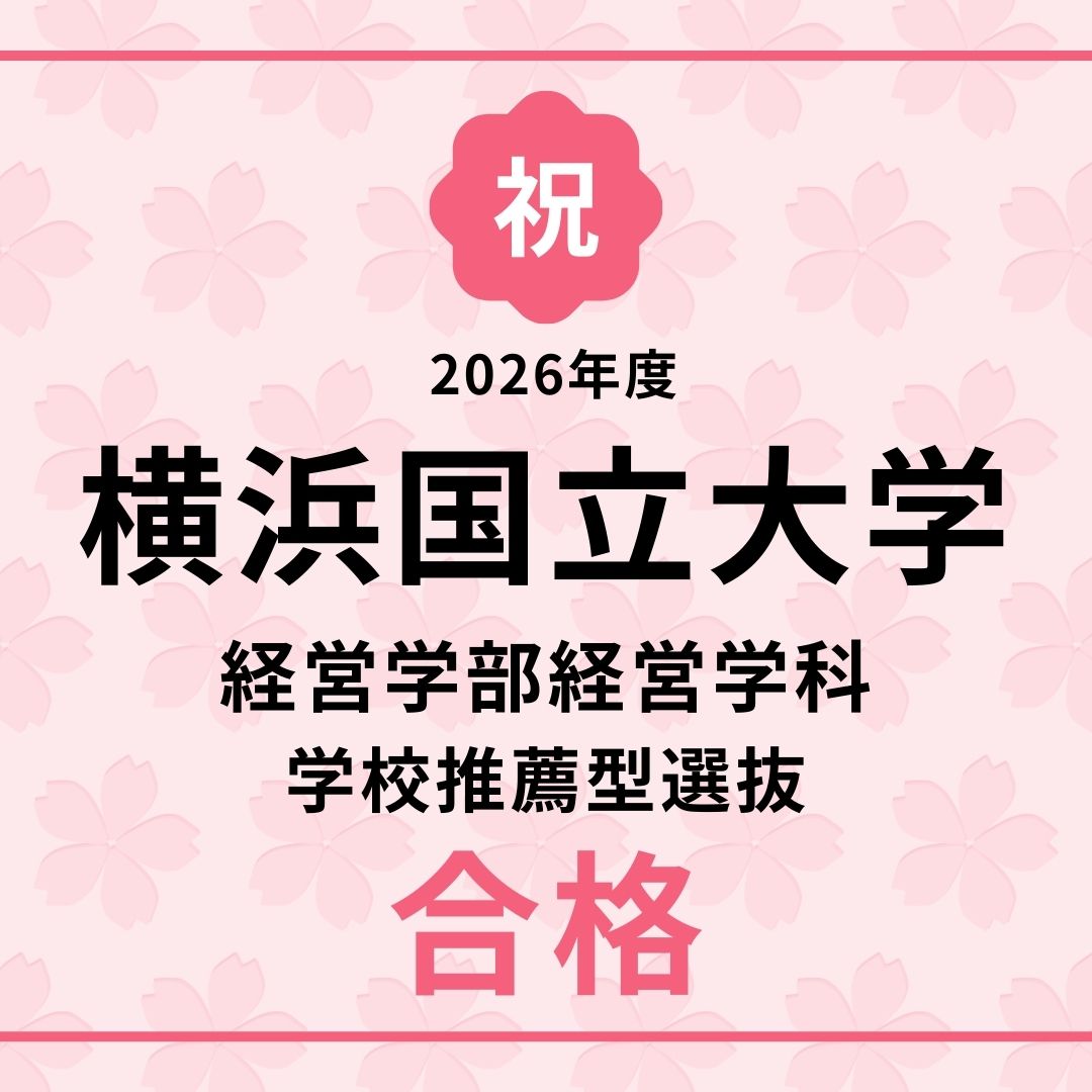 【合格体験記】2026年度 横浜国立大学 経営学部 経営学科 学校推薦型選抜 合格者